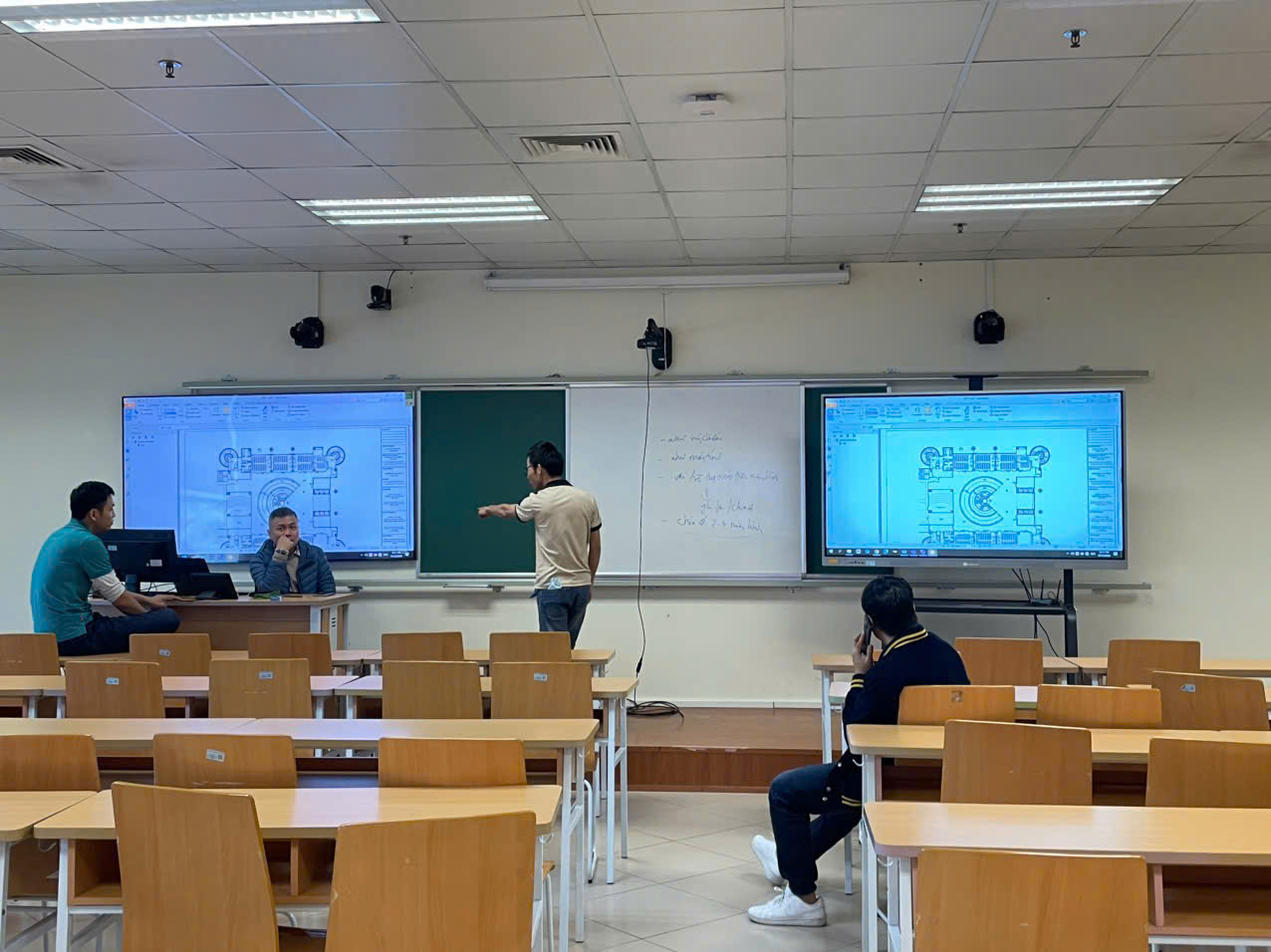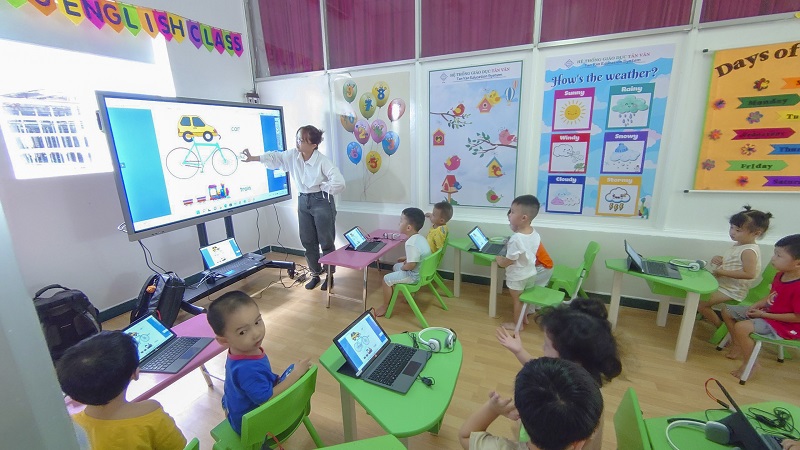 Các trung tâm đào tạo sử dụng màn hình tương tác để giảng bài trực tuyến, chữa bài, làm bài tập nhóm và thao tác ngay trên tài liệu.
