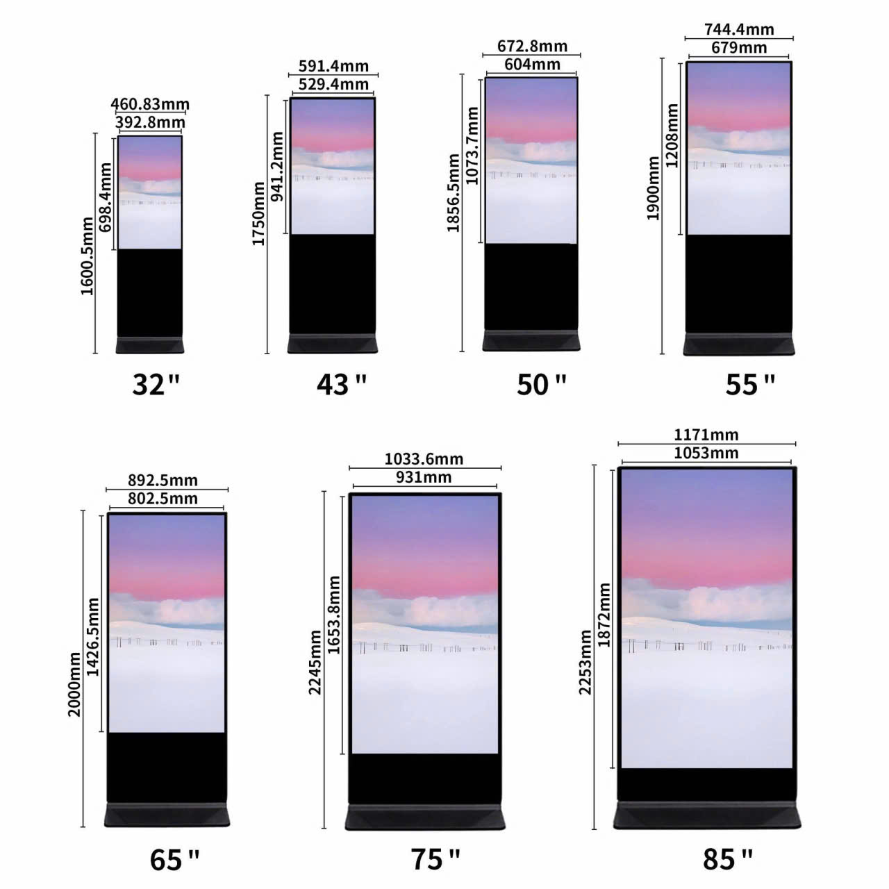 Cho Thuê Màn Hình quảng cáo kích Thước từ 32 inch Đến 75 inch